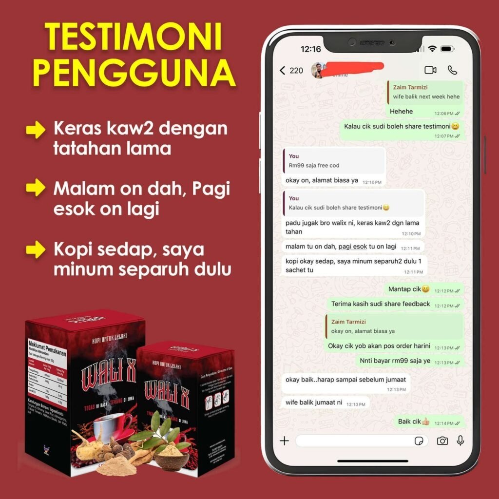 penggunaan WALIX COFFEE konsisten membantu pulihkan badan khususnya zakar.